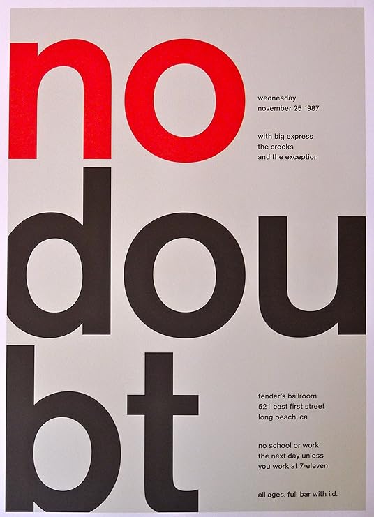 No doubt poster amazon. No doubtposter finden sie alles fuer ihr zuhause bei amazonde. Quando usci questo album conoscevo gia da anni i no doubt e fu la conferma che questo gruppo sa sapeva non ripetersi mai. Only 3 left in stock order soon. 50 out of 5 stars 4.
